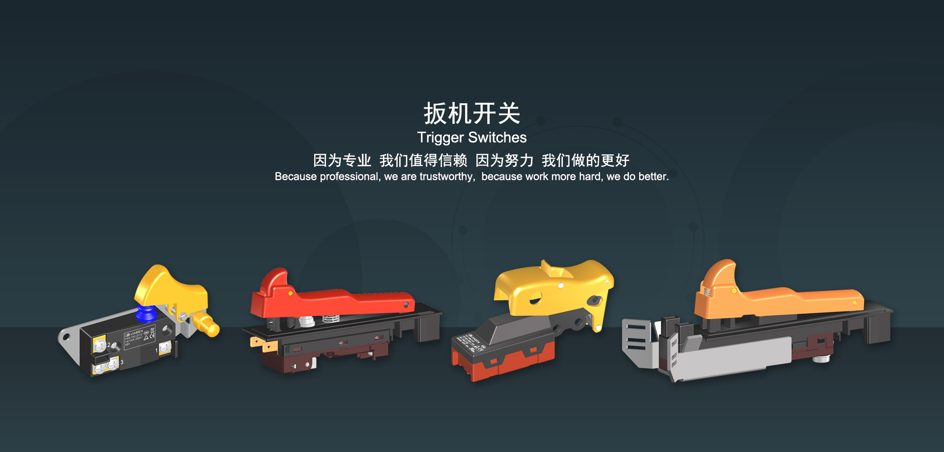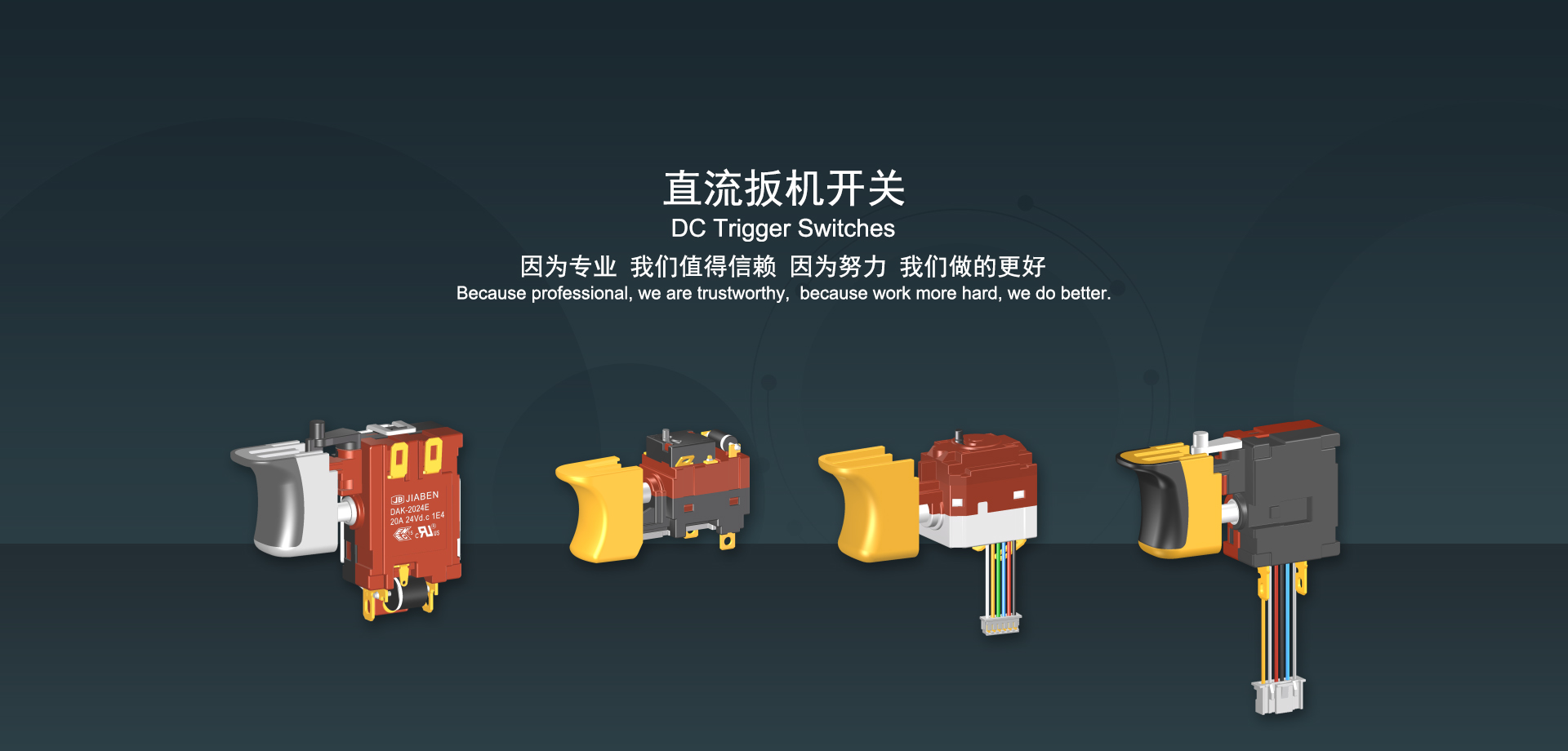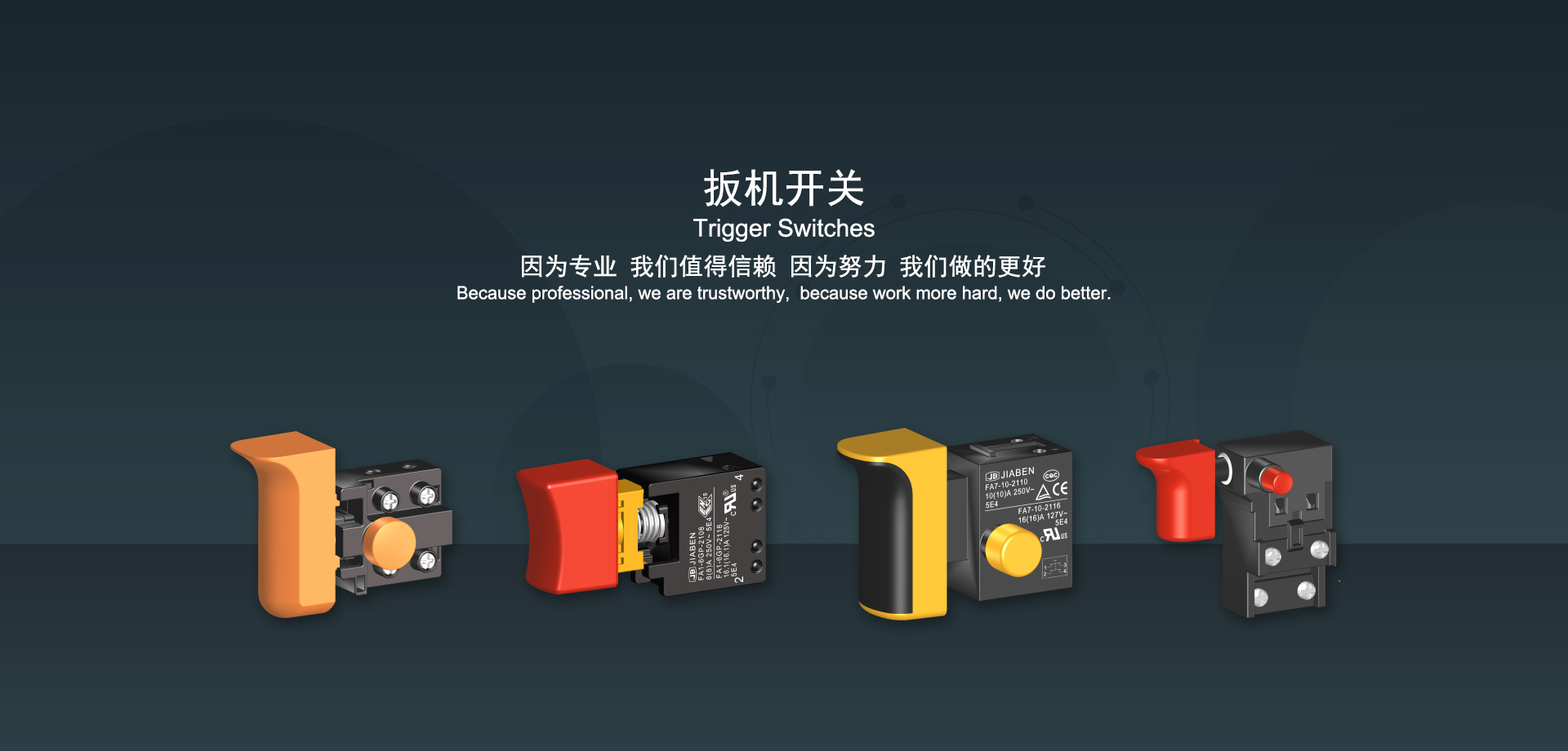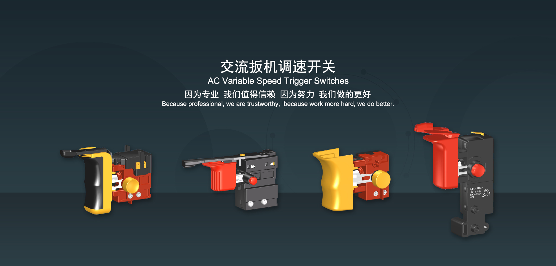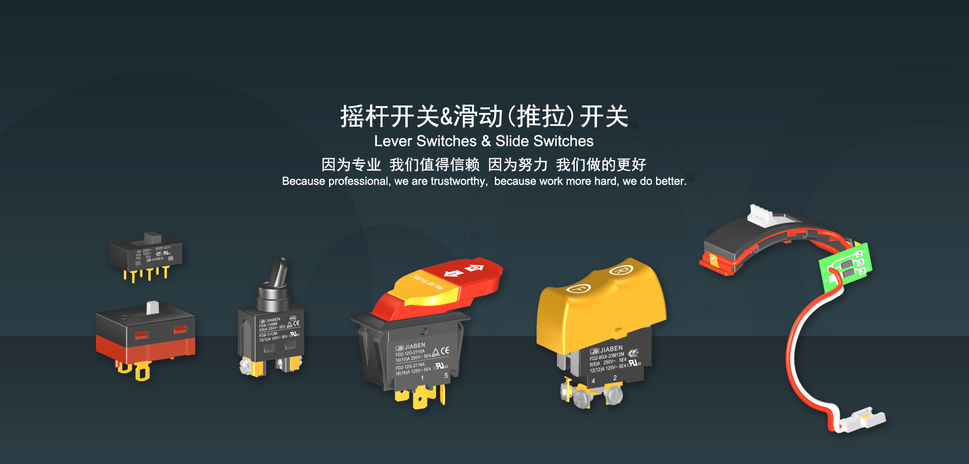 皇冠集团app下载始建于1986年,坐落于浙江省乐清市虹桥镇东电子信息产业园内,现有职工700多人,资产总额超3亿元。公司主要经营“JIABEN”牌微动开关、跷板开关、按钮开关、扳机开关、调速开关和电位器开关等各类交、直流器具开关和各类交、直流线路板模块等产品,主要应用于交、直流电动工具、电动园林工具、清洁器具、家用电器和小型机床等行业,是集产品设计、研发、制造、销售和服务于一体的国家高新技术企业。JIABEN was founded in 1986, located in East Electronic Information Industry Park, Hongqiao Town, Yueqing City, Zhejiang Proviance, existing staff more than 700 peoples, more than 300 million RMB worth of assets. Company is mainly engaged in "JIABEN" brand Micro Switch, Rocker Switch, Push-button Switch, Trigger Switch, Speed Regulating Switch, Potentiometer Switch and other kinds of appliance switch and all kinds of AC or DC circuit board module, such as more than 100 series, 8000 kinds of models of products, mainly used in AC or DC Power-tools, Power Gardening Tools, Cleaning Appliances, Household Appliances and Small Machine Tool and other industries, is the collection product design, research and development, manufacturing, sales and service in one of the national high and new technology enterprise.