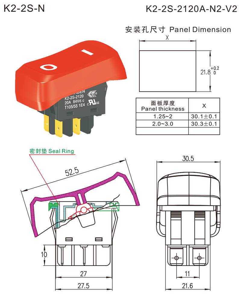 K2-2S(防尘防水)高额定值跷板开关