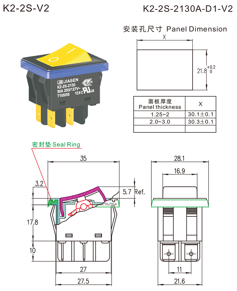 ◆K2-2S系列是一款标准型的跷板开关,也通称船型开关、波形开关等,有多重款式可以选择,可选带防护罩实现防尘防水,也有内部防尘结构来实现防尘防水,特别适用于各类直流大电流的电动工具、园林工具,如:充电式台剧、充电式电动割草机、充电式高压清洗机等,也可以适用于交流和直流电焊机等。