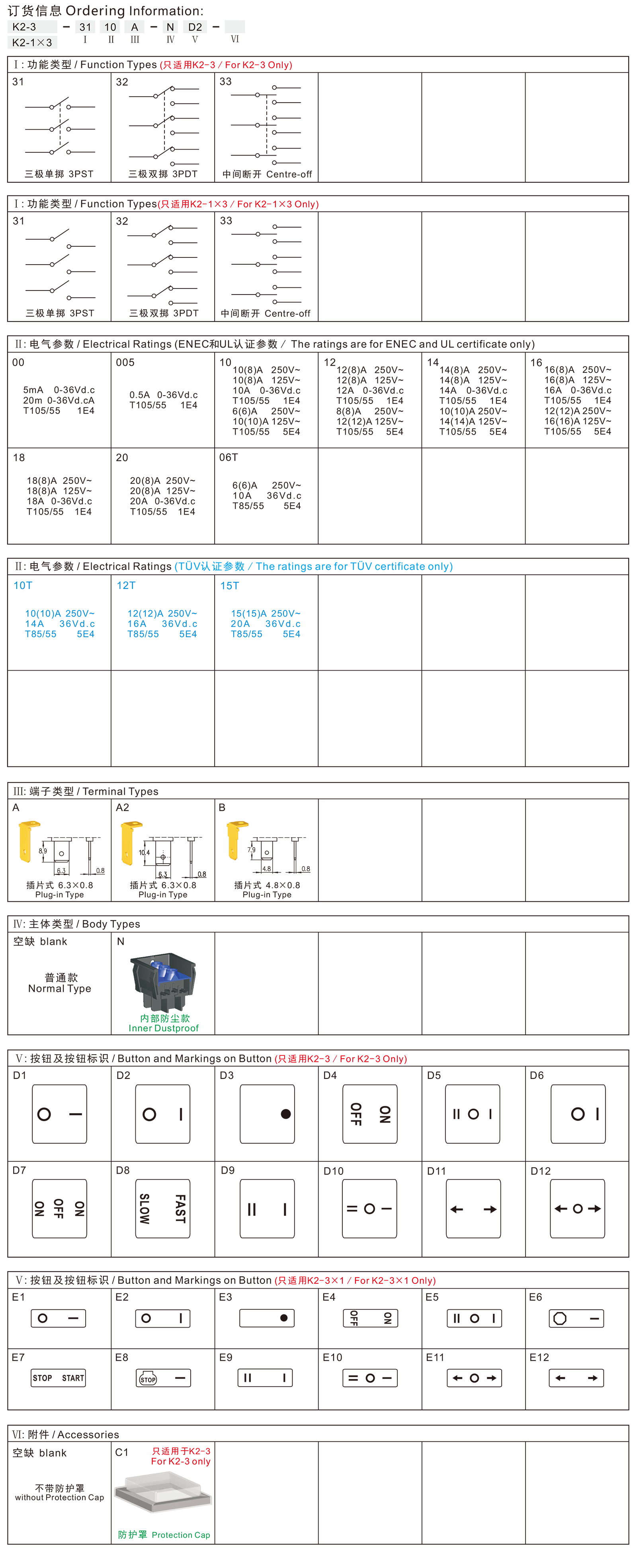 ◆K2-3 series are one special type rocker switches, optional with Protection Cap for dustproof and waterproof, optional with Inner Protection Structure for dustproof and waterproof, for used in power tools, gardening tools and cleaning appliances such as: Table Saws, Bench Grinders, Dry and Wet Vacuum Cleaners, etc. Also for used in all kinds of Home appliances, testing equipments and office equipments, etc.