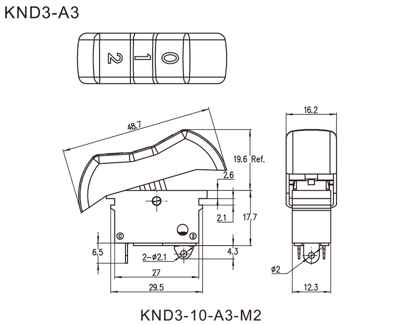 KND3系列是一款通用型的跷板开关,也通称船型开关、波形开关等,一般应用于各类电吹风、热风枪等。