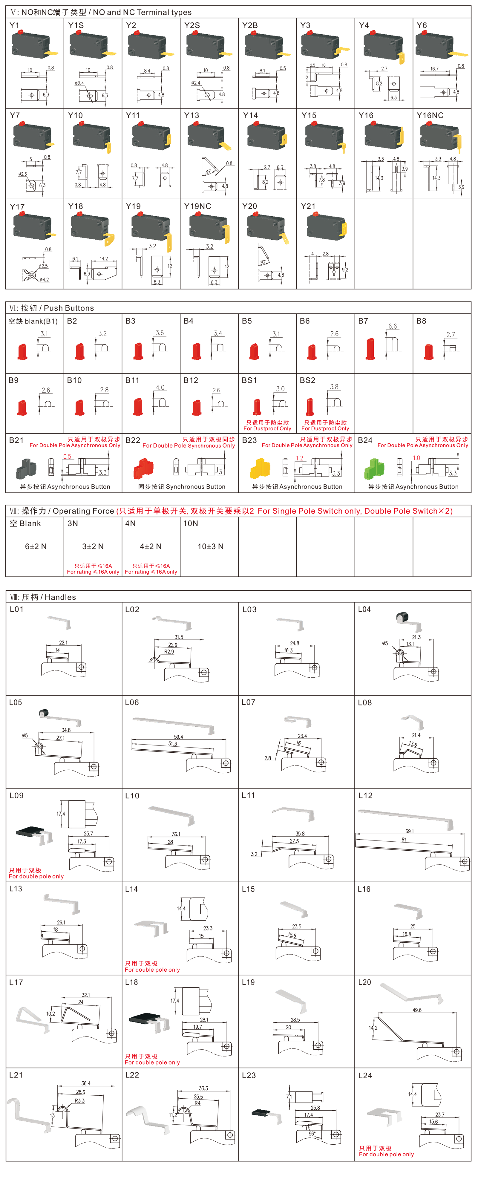 →开关操作力选择范围 Operating force range3N~15N