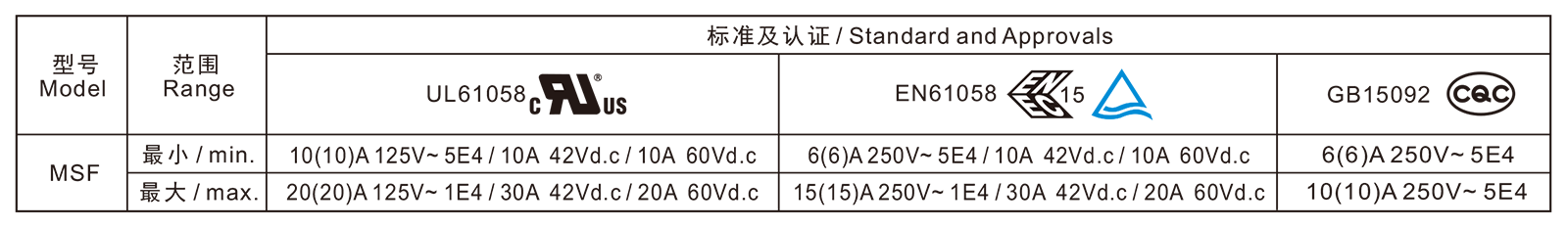 电气参数和认证 Electric Rating and Certification