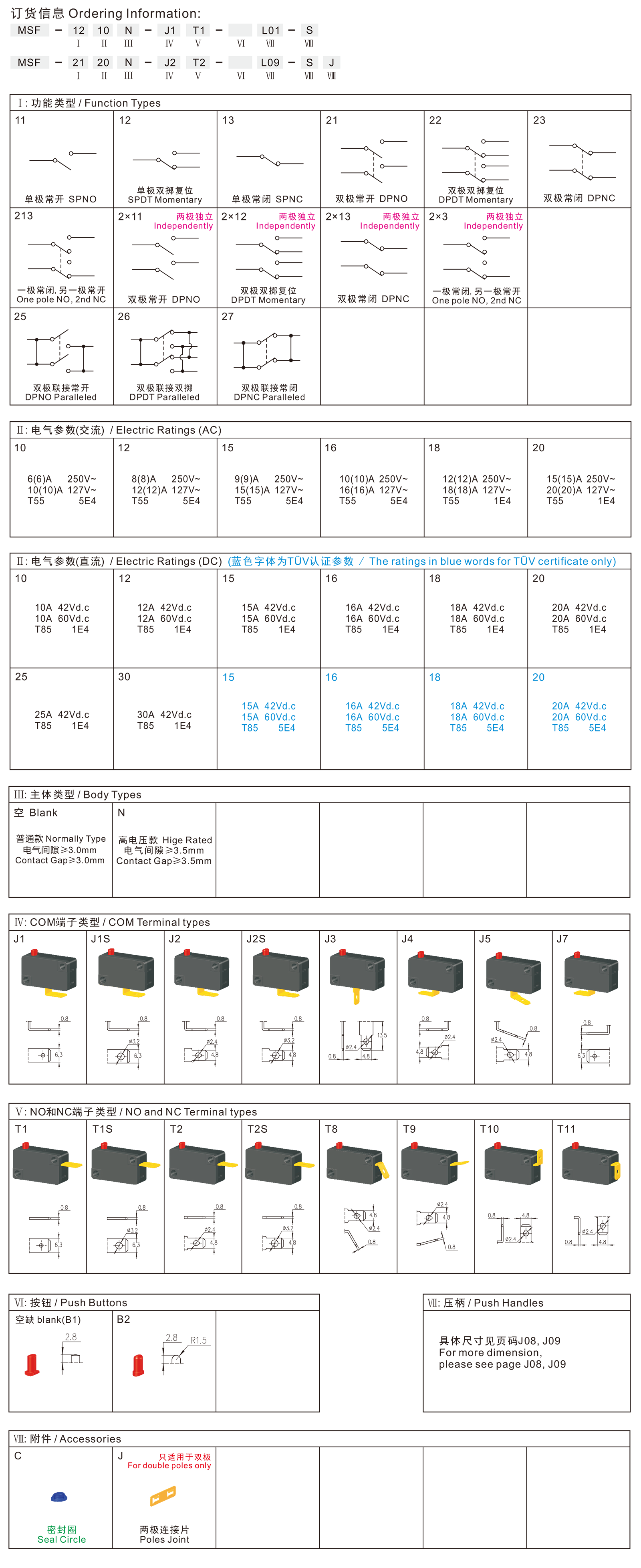 MSF series are one standard micro switches, contact gap≥3.0mm, optional with Seal Ring for dustproof, the voltage up to 60Vd.c, specially for used in high rated DC power-tools and DC gardening tools,such as 18V up DC Angle Grinders, 18V up DC Grass Trimmers, 18V up DC Electric Chain Saws, 18V up DC Blowers, 18V up DC Hedge Trimmers, 18V up DC Multi-head Tools, etc.