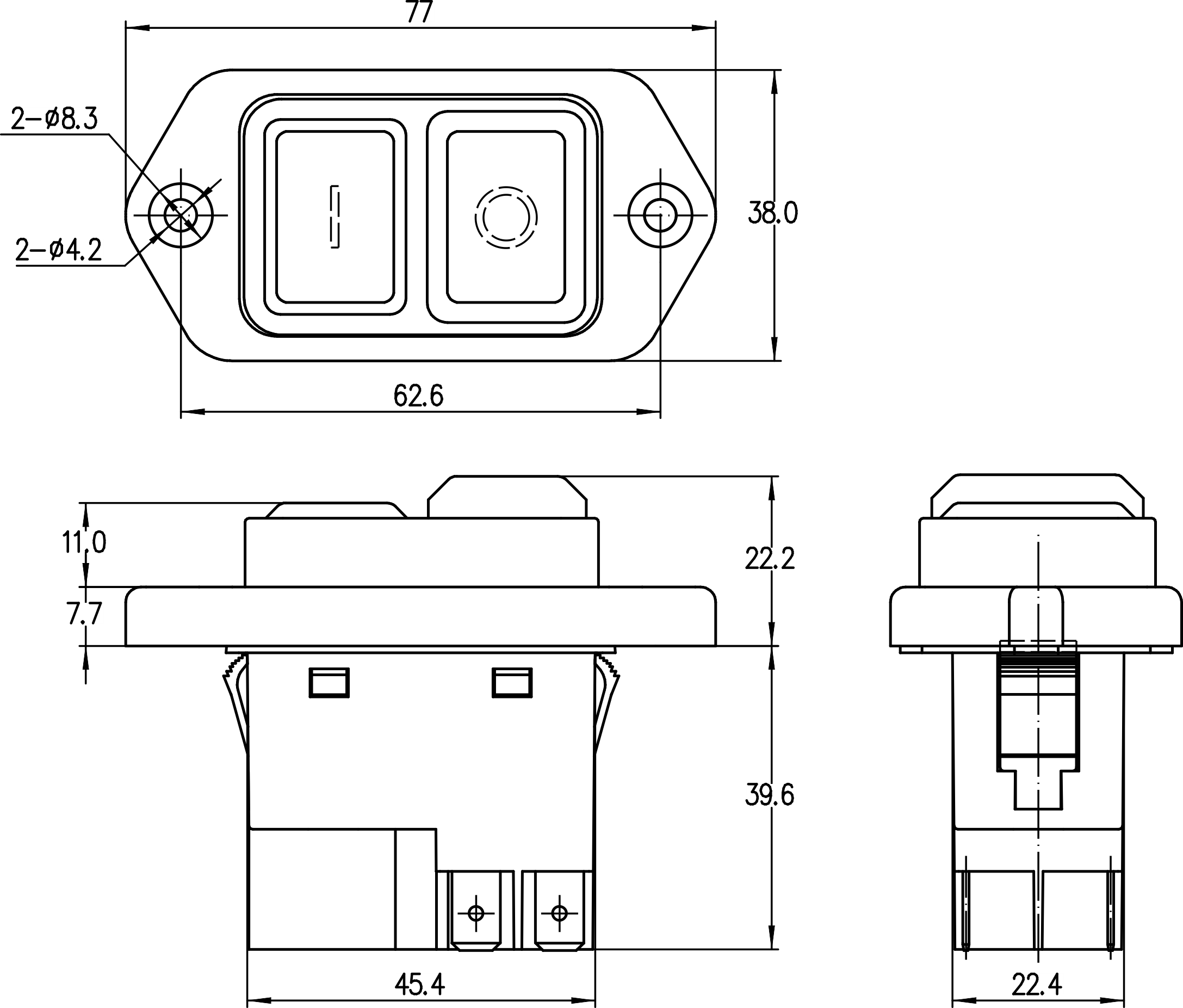 →插片端子 Plug-in terminals 2.8×0.8mm