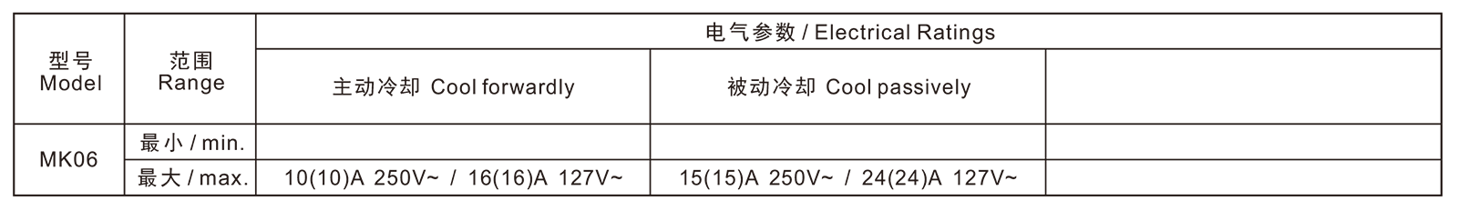 →最大电流 Max. current at 250V15A