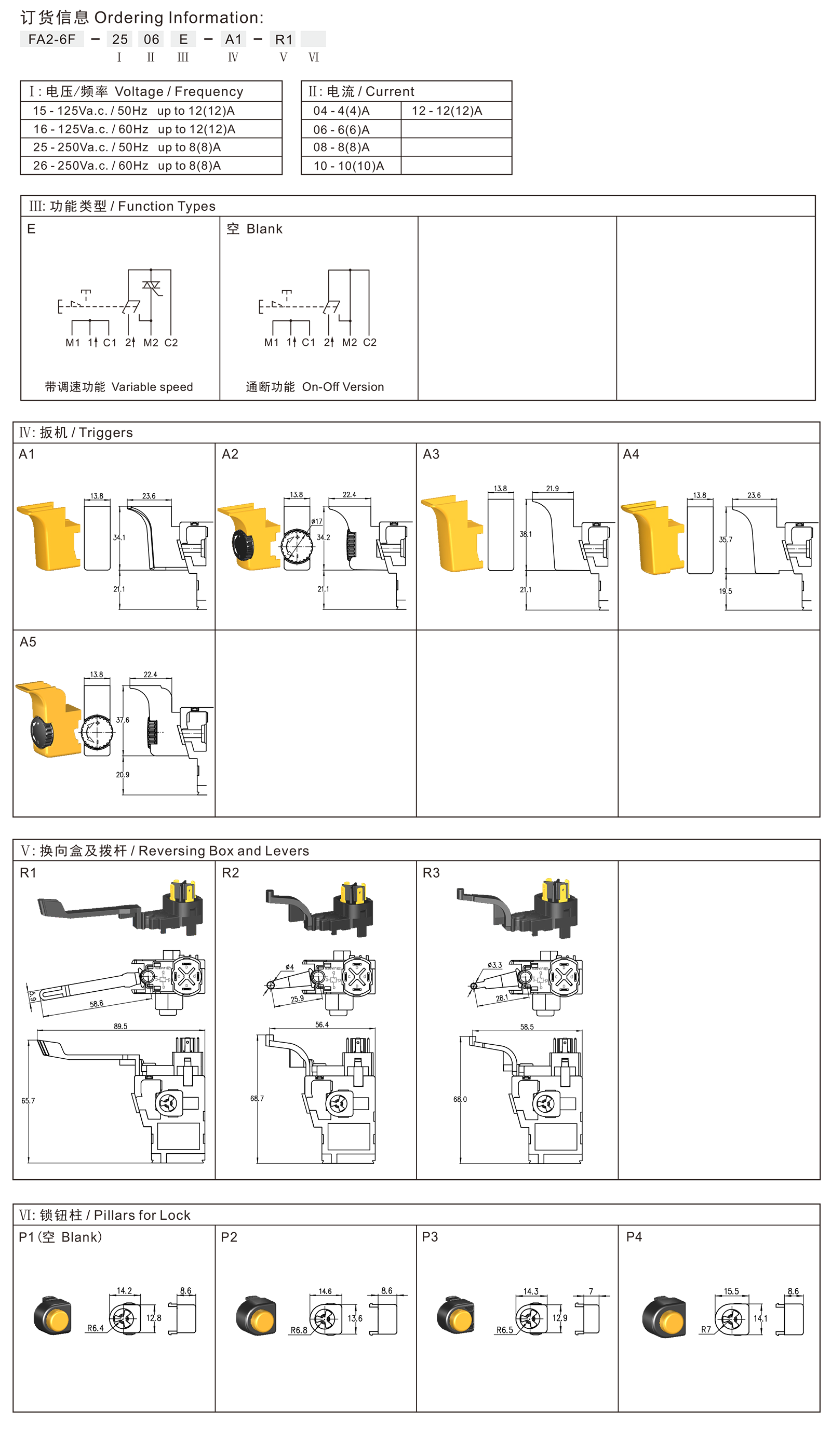 FA2-6F series are one special type variable speed trigger switches, integrated dustproof, for used in portable power-tools such as: Drills, Impact Drills, Rotary Hammers, Reciprocating Saws,Jig Saws, Sabre Saws, Electric Mixers, Polishers, Orbit Sanders, etc.