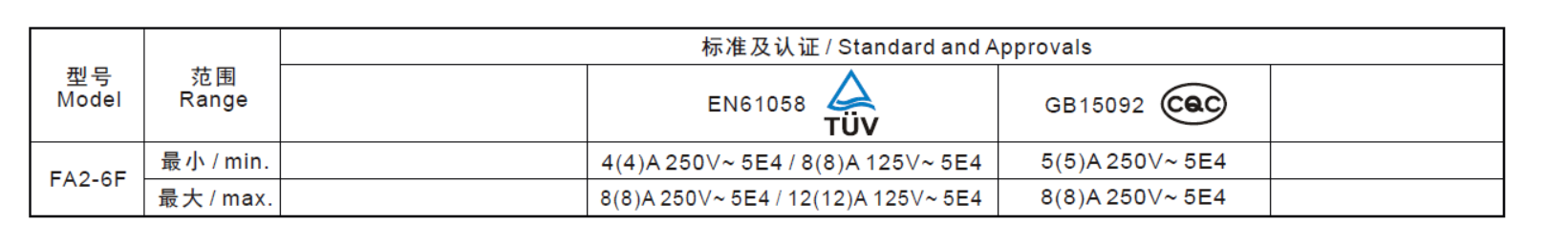 电气参数和认证 Electric Rating and Certification