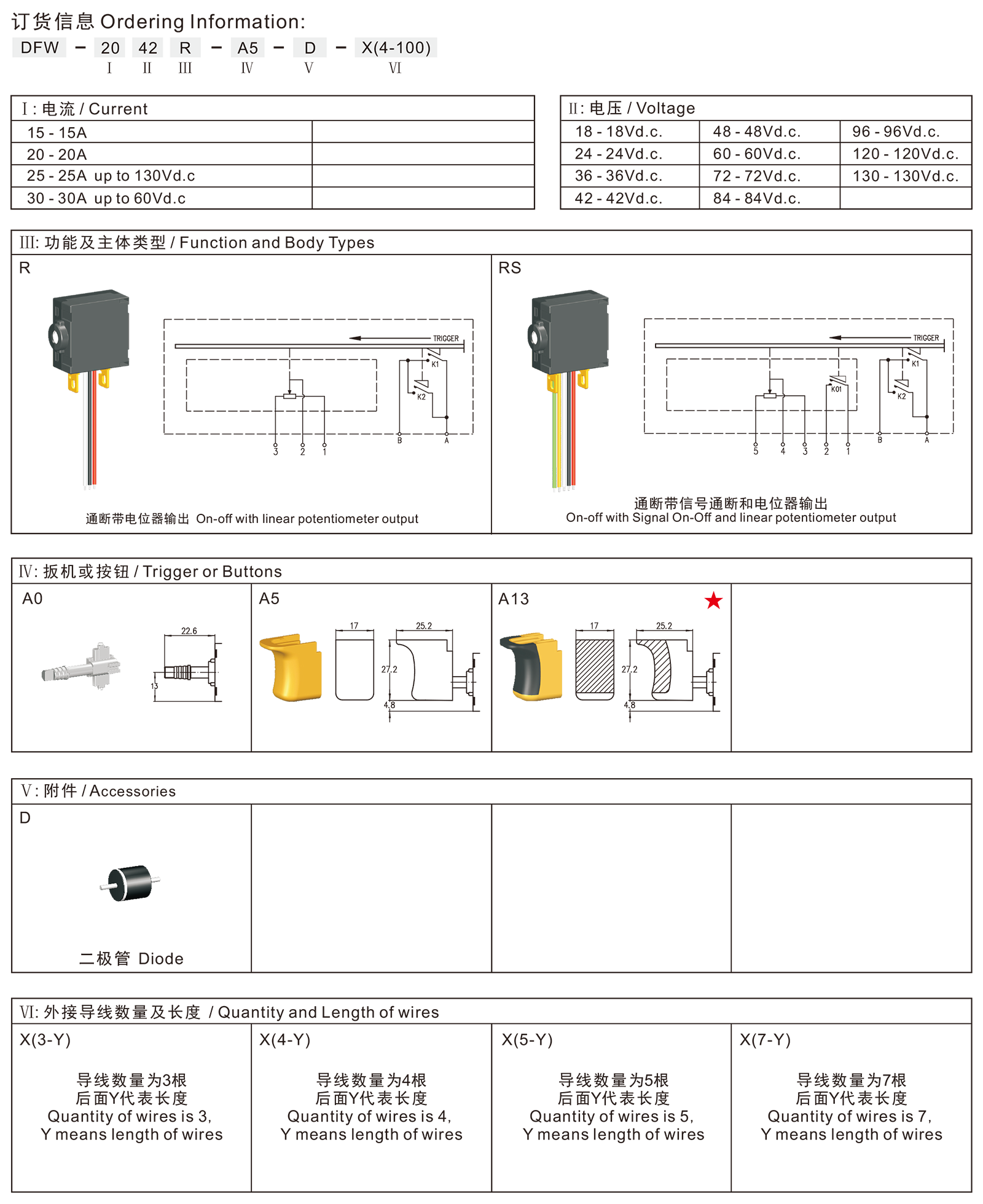 ◆DFW系列是一款专用型的高额定直流扳机开关,集成防尘功能,应用于各类直流充电式园林工具,如:充电式吹吸机、充电式打草机、充电式多头工具等.