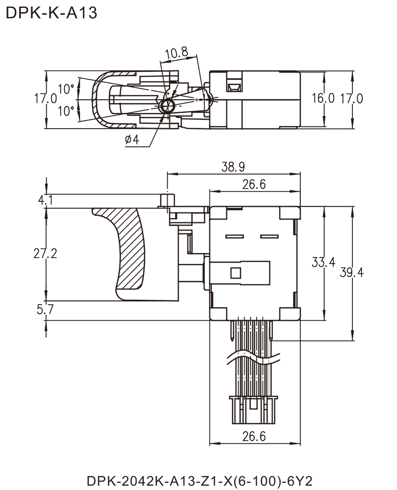 DPK系列是一款通用型的直流扳机开关,集成防尘机械刹车接点,内部带换向结构,应用于各类直流充电式手持电动工具,如:充电式电钻、充电式电锤、充电式电圆锯、充电式螺丝起子、充电式冲击扳手等,也可应用各类直流无刷电动工具。
