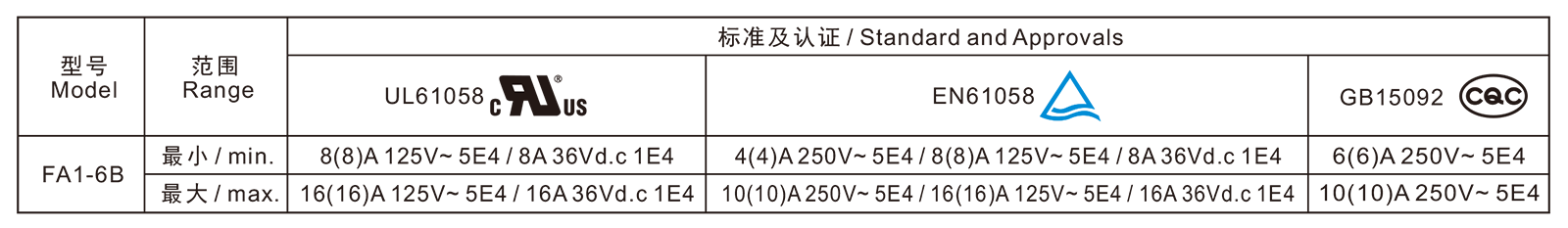 电气参数和认证 Electric Rating and Certification