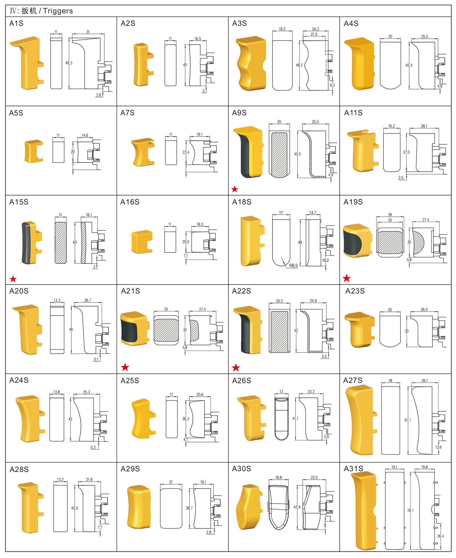 ◆FA1-6B系列是一款通用型的扳机开关,集成防尘功能,广泛应用于各类手持式电动工具,如:电钻、电锤、往复锯、曲线锯、搅拌器、型材切割机、石材切割机、电圆锯、电木铣、砂带机、砂光机、电刨、电动喷枪、电动钉枪,也可应用于电动园林工具,如:打草机、电链锯、电动割草机、电动扫雪机等。