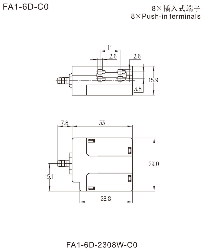 →2×接线柱端子Pillar terminalsφ=2.8mm