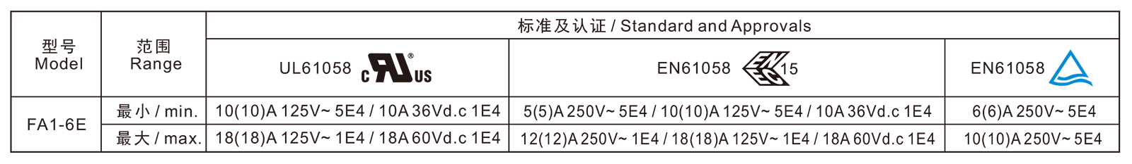 电气参数和认证 Electric Rating and Certification