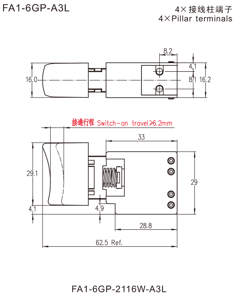 FA1-6G/FA1-6GP防尘快速动作扳机开关