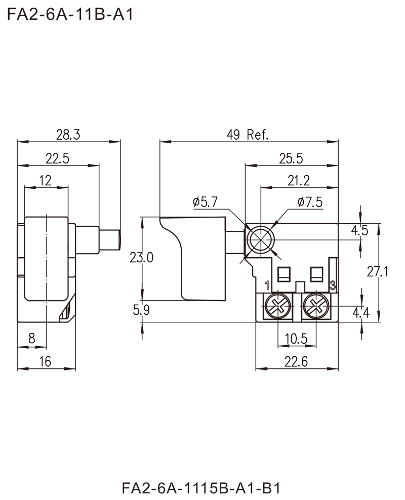 FA2-6A系列是一款通用型的扳机开关,集成防尘功能,广泛应用于各类手持式电动工具,如:电钻、云石机、电圆锯、电木铣、砂带机,砂光机、电刨等。