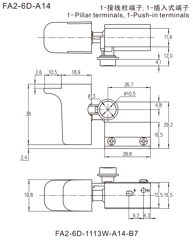→接线柱端子 Pillar terminals φ=3mm