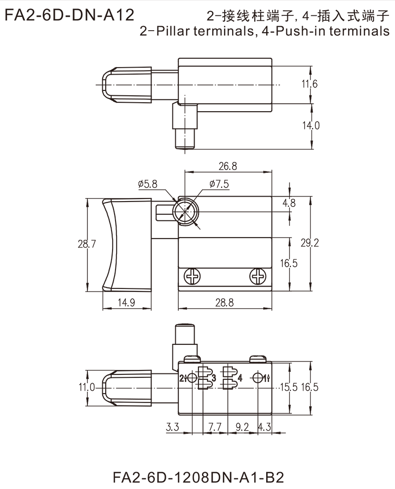 FA2-6D, FA2-6DX, FA2-6DY防尘扳机开关