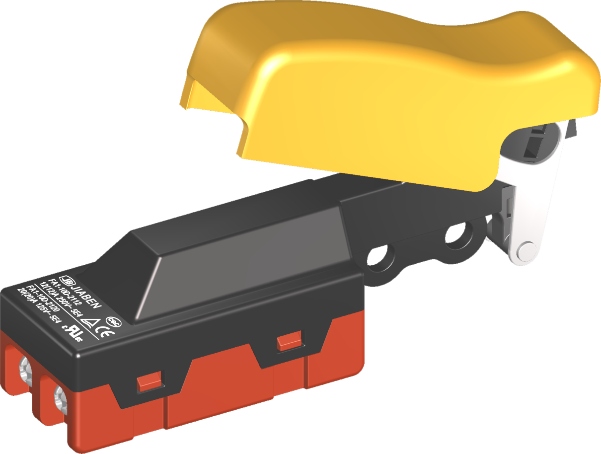 FA1-10B, FA1-10D series are general type high rated trigger switches, integrated dustproofwith snap-action structure, for used in high rated bench top, portable power-tools and gerdening tools such as Cut-off Machines, Miter Saws, 150mm, 180mm and 230mm Angle Grinders, Polishers, Circular Saws, Rotary Hammers, Demolition Hammers, Electric Chain Saws, etc.