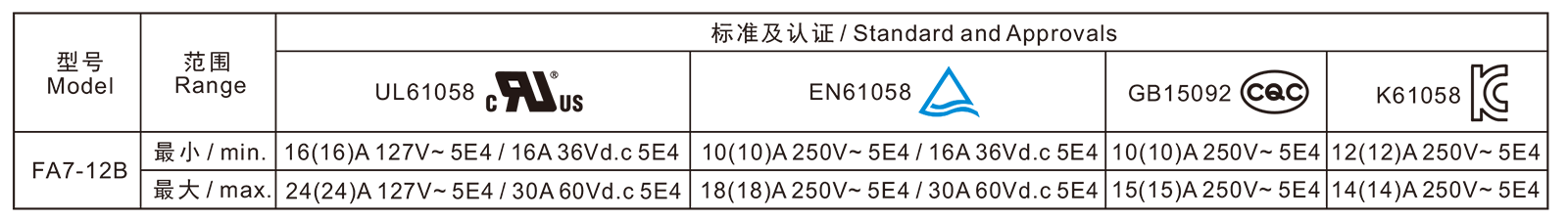 电气参数和认证 Electric Rating and Certification