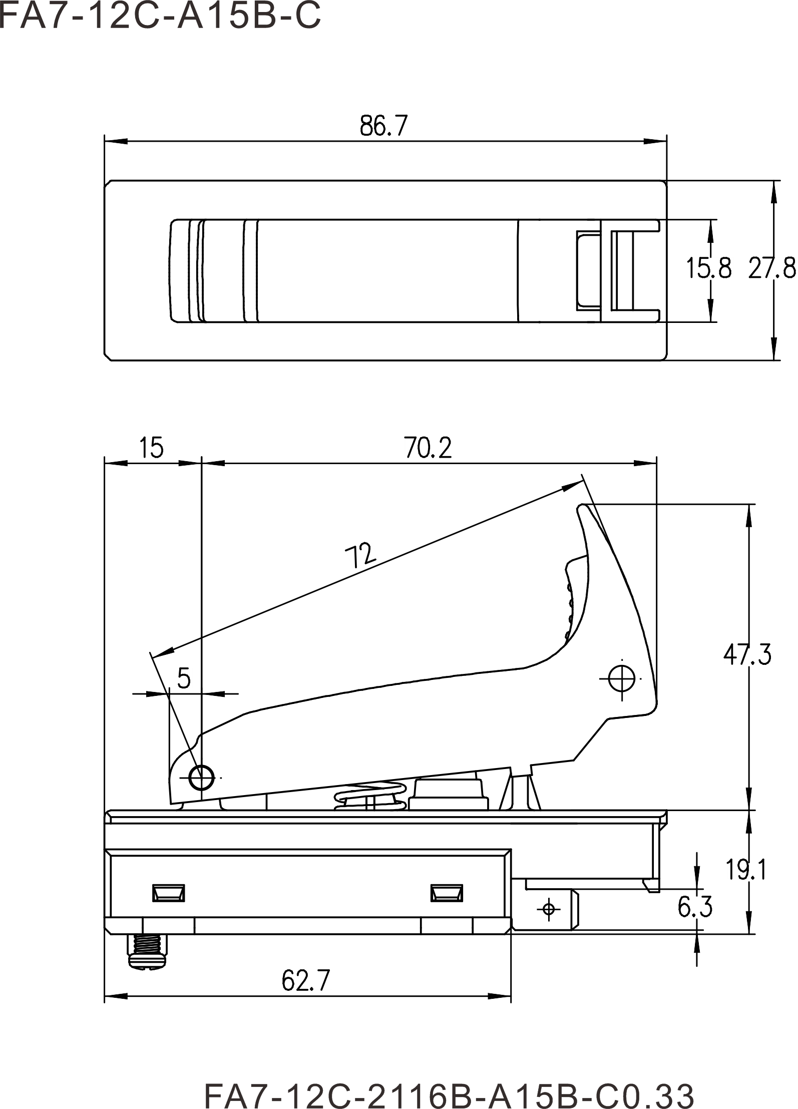 FA7-12C系列是一款专用型的大电流扳机开关,集成防尘功能,内部为快速动作结构,广泛应用于各类的电动工具,如:型材切割机,斜切锯(介铝机), 125和150中角磨,电锤,电镐等.有超过10种主体和扳机可供选择,也可按照客户要求定制.