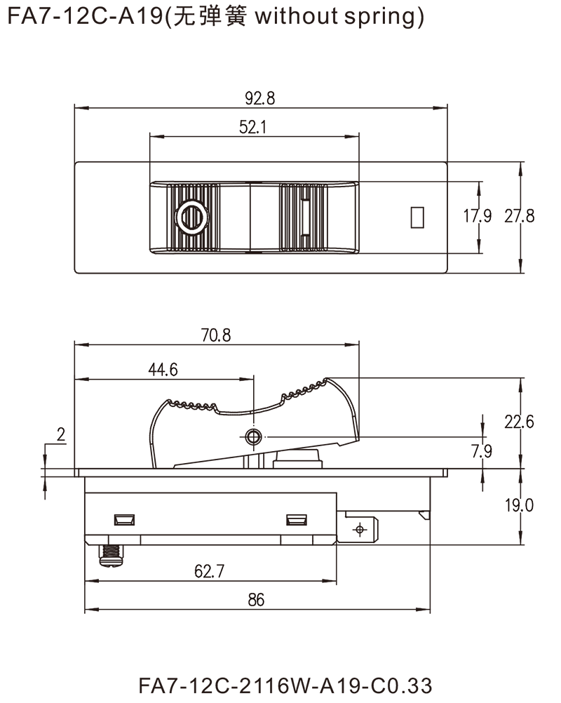FA7-12C系列是一款专用型的大电流扳机开关,集成防尘功能,内部为快速动作结构,广泛应用于各类的电动工具,如:型材切割机,斜切锯(介铝机), 125和150中角磨,电锤,电镐等.有超过10种主体和扳机可供选择,也可按照客户要求定制.