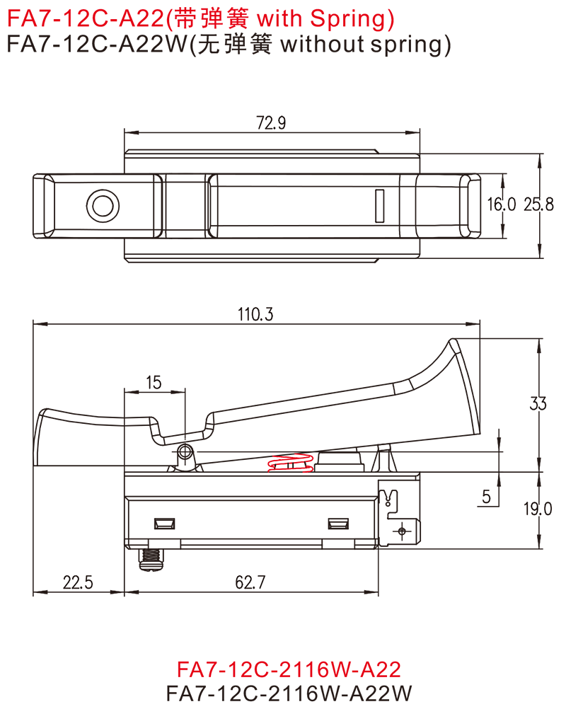 FA7-12C防尘快速动作扳机开关