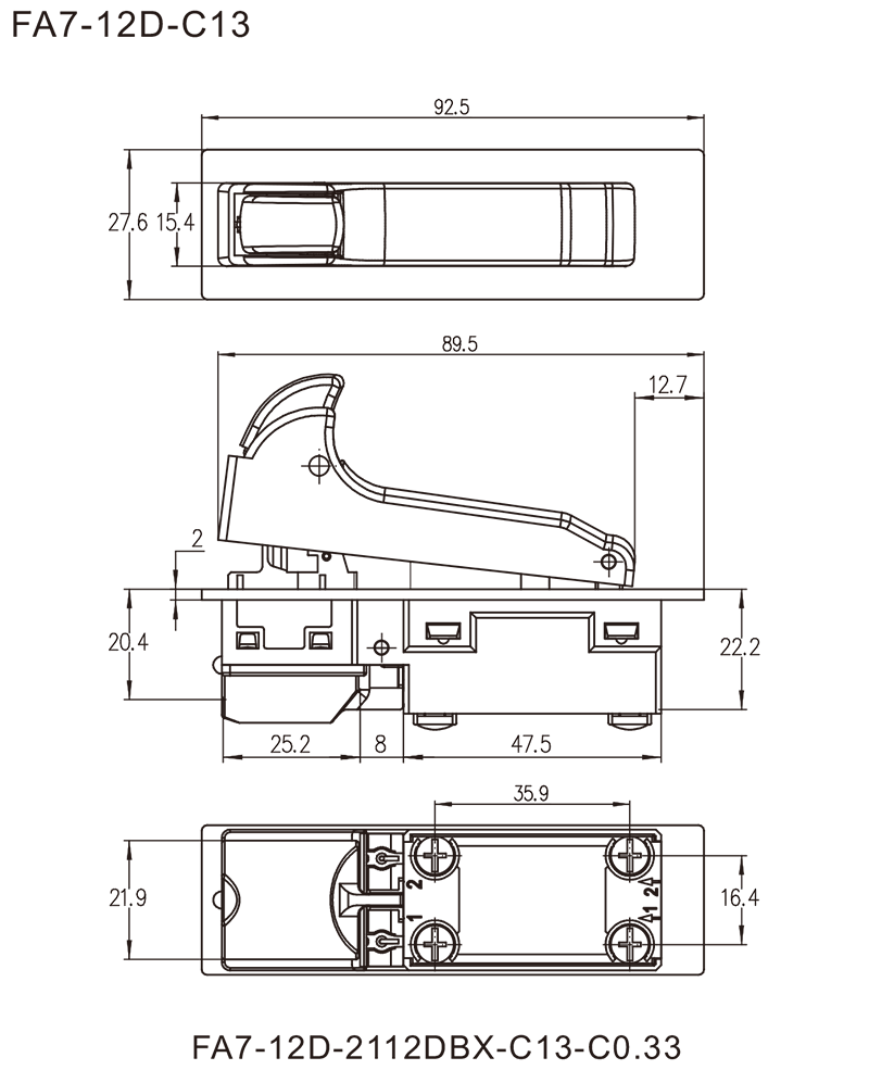 FA7-12D series are one special type AC trigger switches,integrated dustproof, with snap-action inner structure and restart protection when the power supply is interrupted (MechanicalType),designed specially for small angle grinders according to EN60947, for used in portable and bench top power-tools such as Cut-off Machines, Miter Saws, 1 50mm, 180mm and 230mm L arge Angle Grinders, etc.