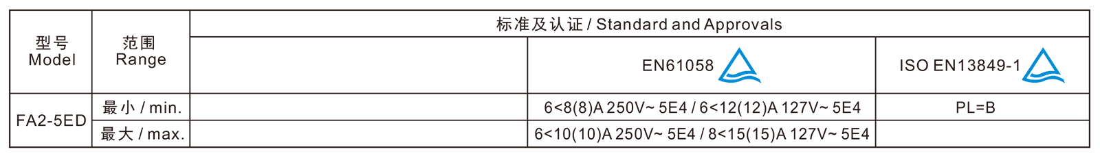 电气参数和认证 Electric Rating and Certification