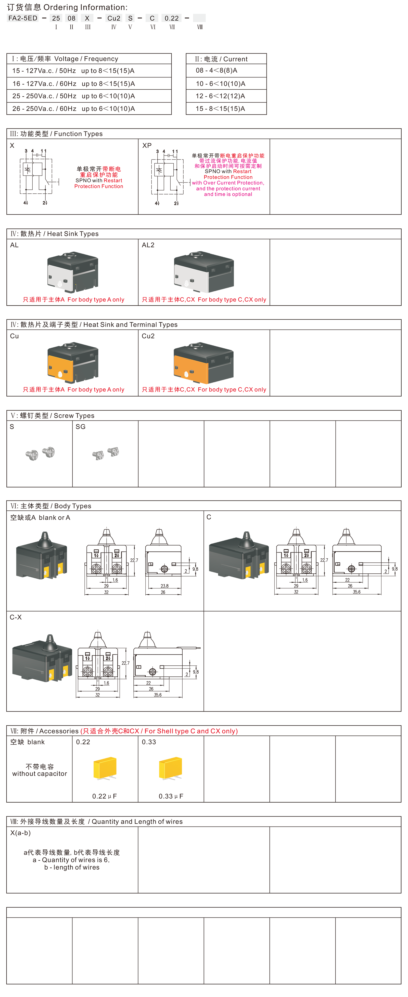 →插片端子 Plug-in terminals 2.8×0.8mm