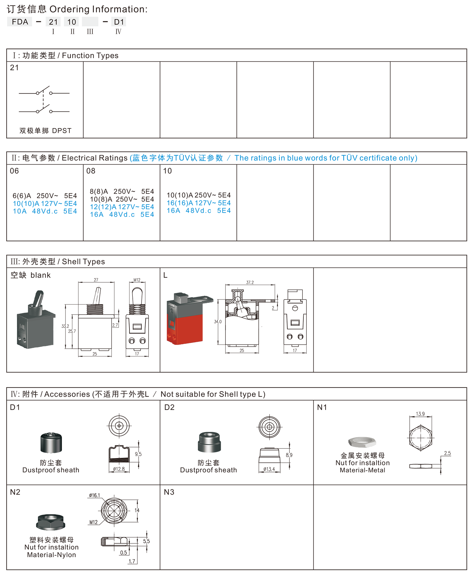 ◆FDA系列是一款专用型的倒扳开关,也叫摇杆开关或拨动开关,集成防尘功能,应用于各类电动工具,如:100和125角向磨光机、电木铣、模具电磨、电锤、电镐等。