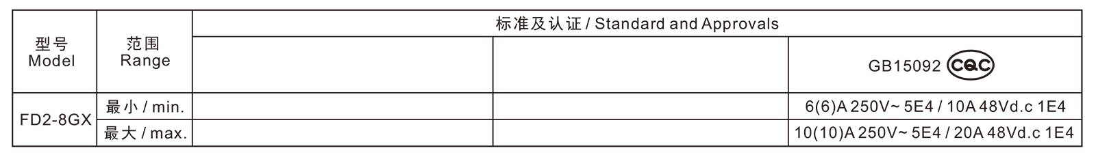 电气参数和认证 Electric Rating and Certification
