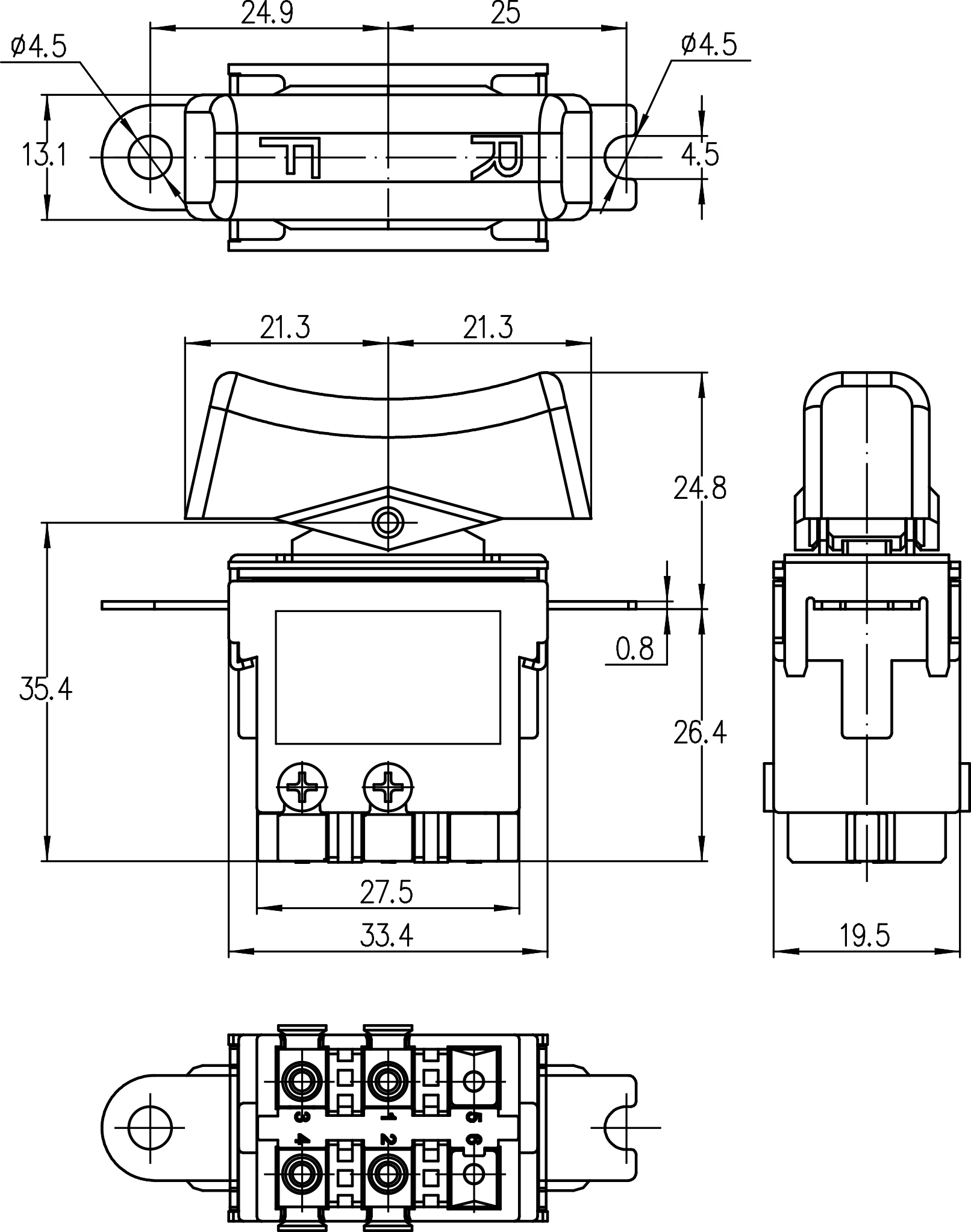 →双极双掷带中间断开 DPDT with center off