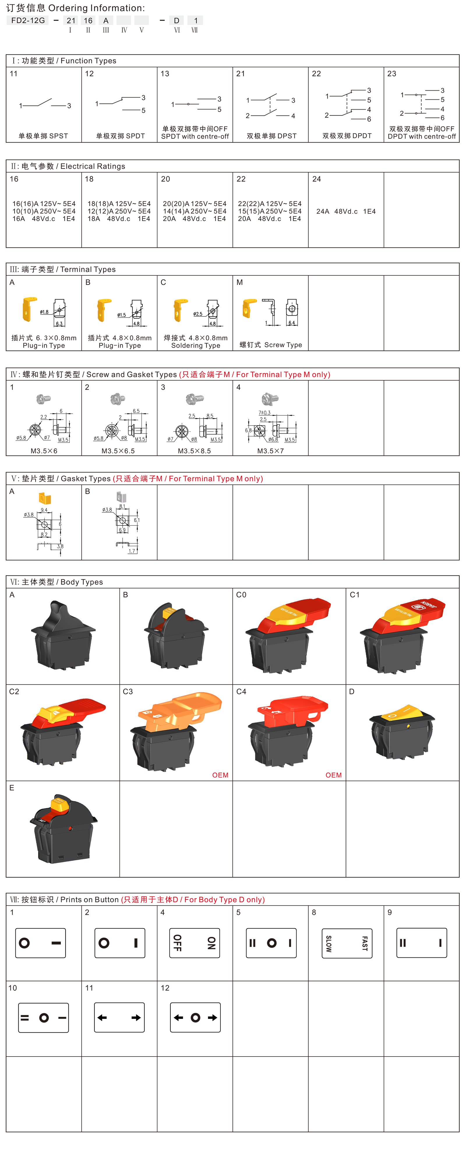 FD2-12G series are special type Lever switches, integrated dustproof and waterproof, commonly for used in bench top power-tools such as Bench Push-pull Saws, Bench Circular Saws, Bench Planers, Bench Routers, Bench Scroll Saws, Drill Presses, Bench lathes, Bench Grinders, Bench Marble Cutters, Floor Cutters, etc.