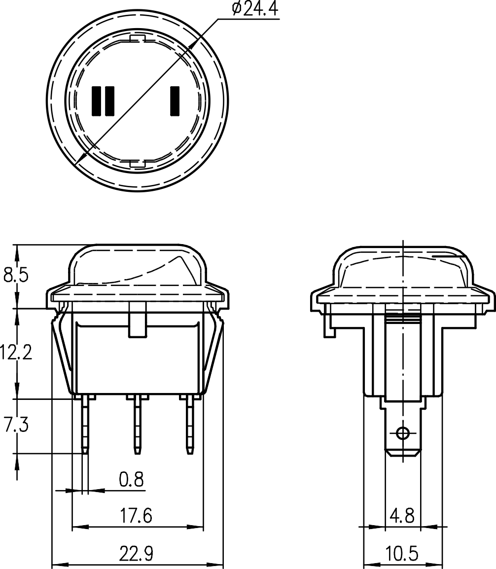 →插片端子 Plug-in terminals 4.8×0.8mm