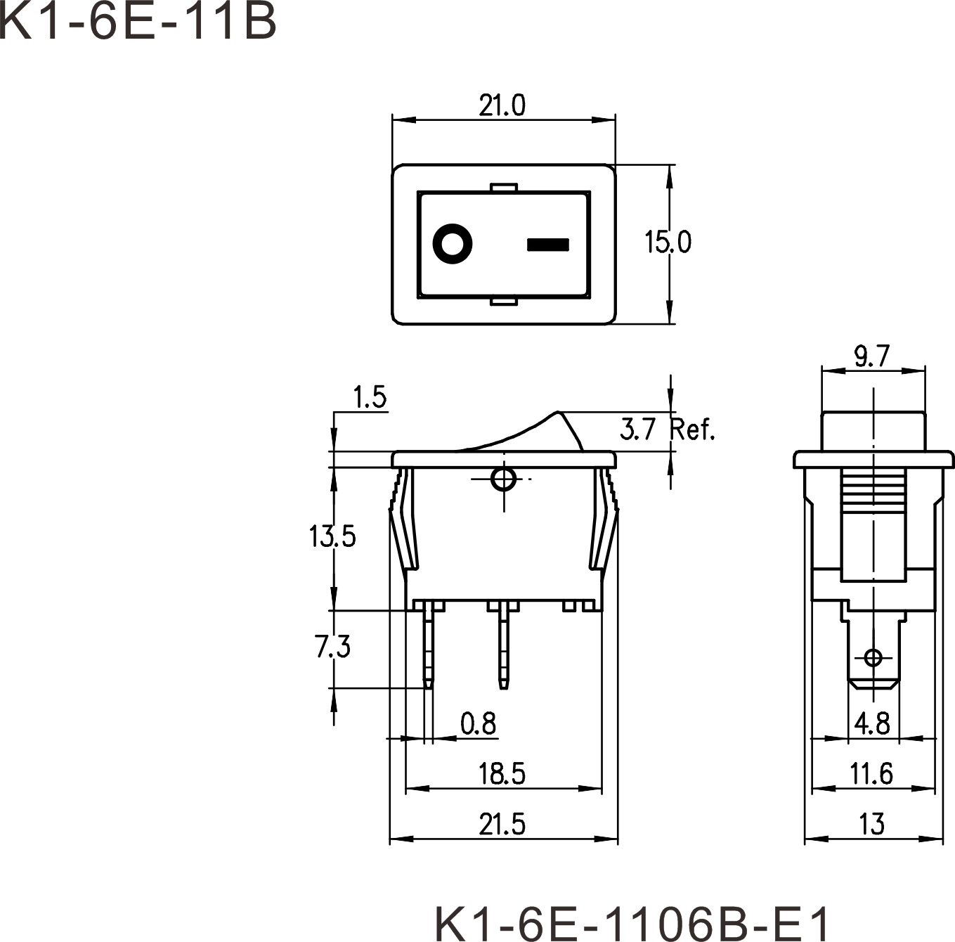K1-6E series are one standard type rocker switch, optional with Protection Cap for dustproof and waterproof, or with inner dustproof structure, commonly for use in portable power-tools such as Hand Sanders, Die Grinders, Electric Nailers, Laser Actuators, etc. Also for used in small Home appliances and office equipments, such as Reading Lamps, Electric Fans, Printers, Game Players, Computer Power-supplys, Power Sound Box, etc.