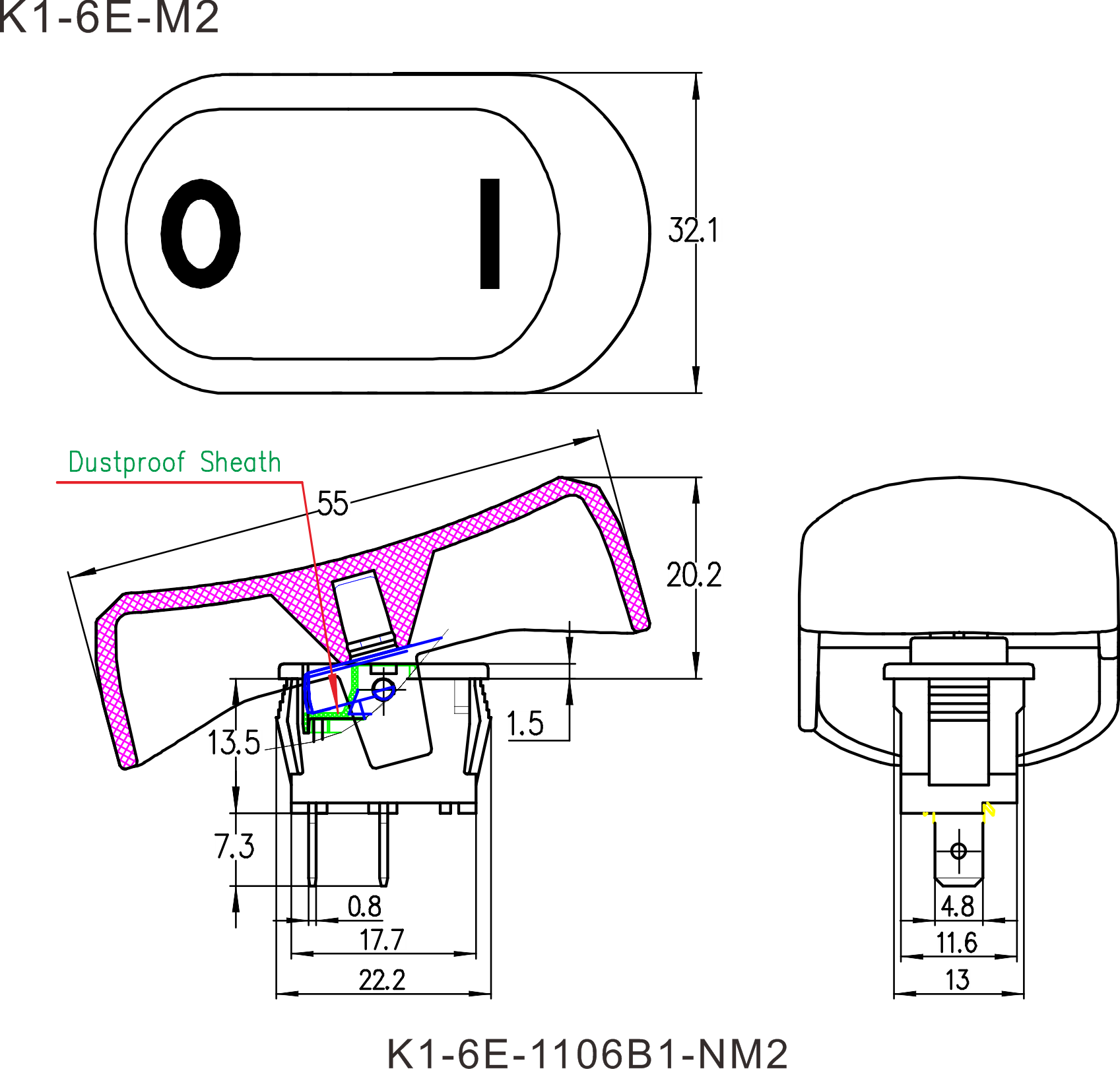 K1-6E series (Dustproof) Rocker Switches