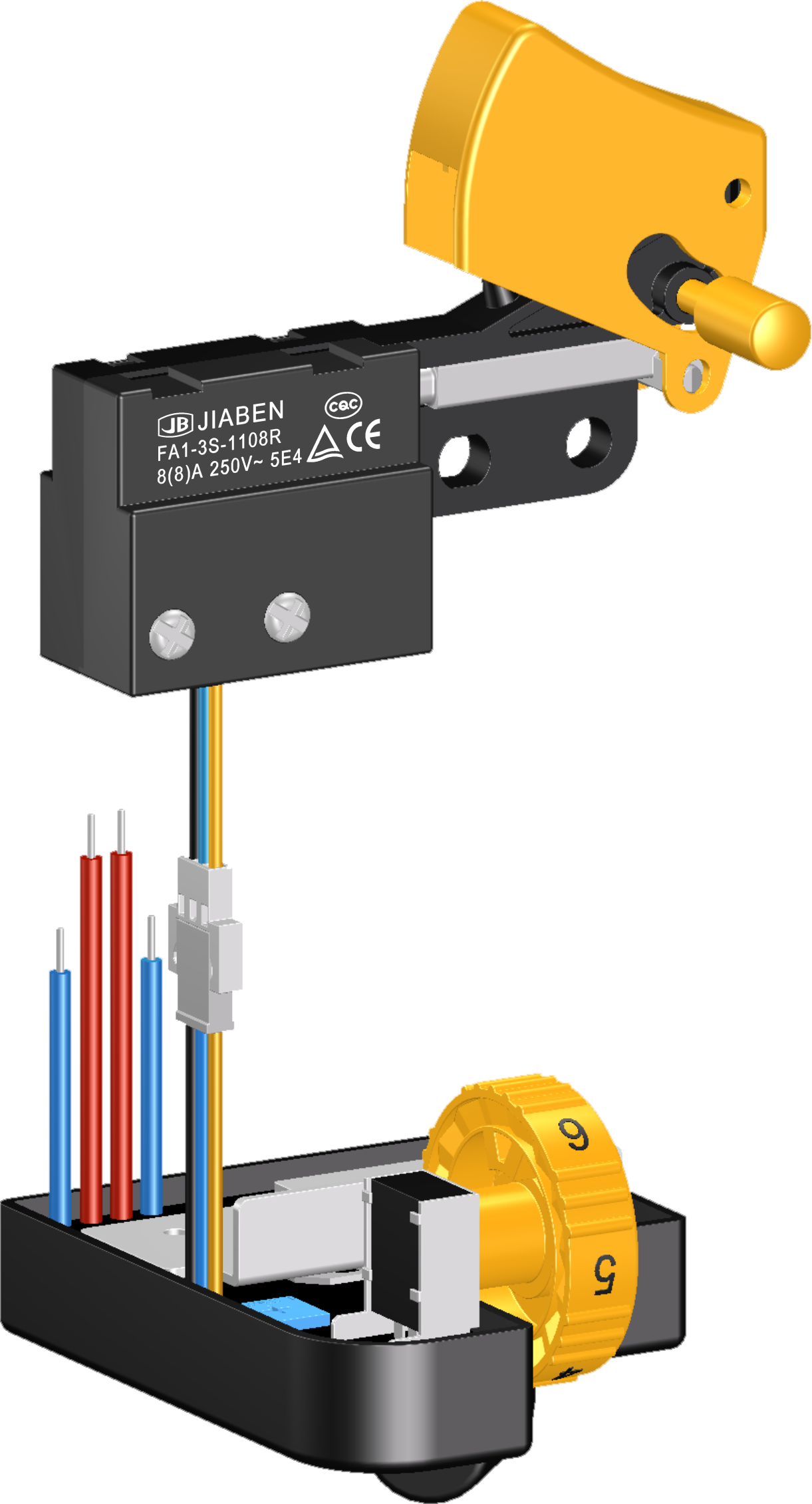 我司主要产品:微动开关、跷板开关、按钮开关、扳机开关、调速开关和电位器开关等各类交、直流器具开关和各类交、直流线路板模块,应用于交、直流电动工具、电动园林工具、清洁器具、家用电器和小型机床等行业。 Our company main products: micro switch, rocker switch, push button switch, trigger switch, speed switch and potentiometer switch and other kinds of a
