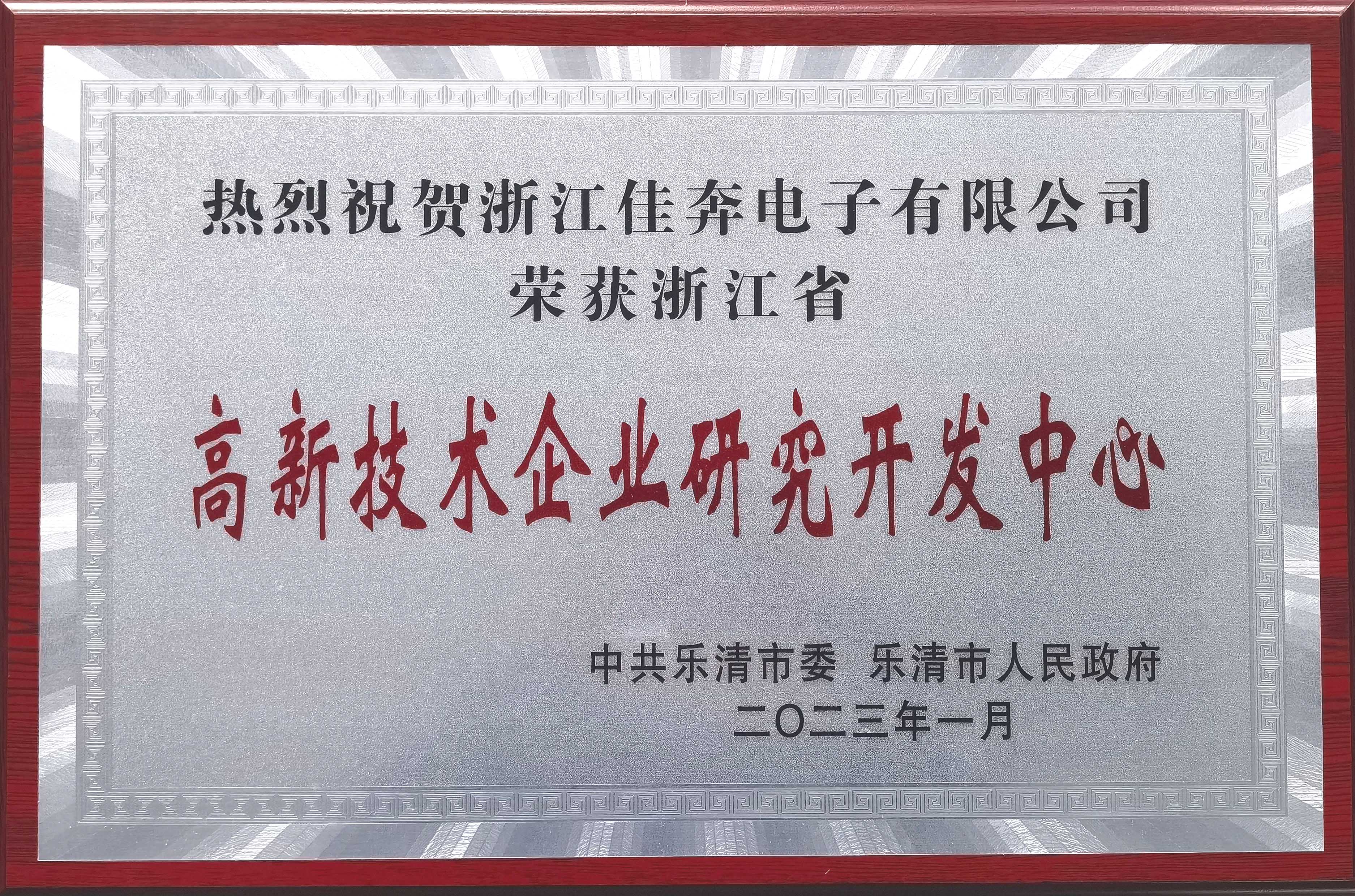 浙江省级高新技术企业研究开发中心