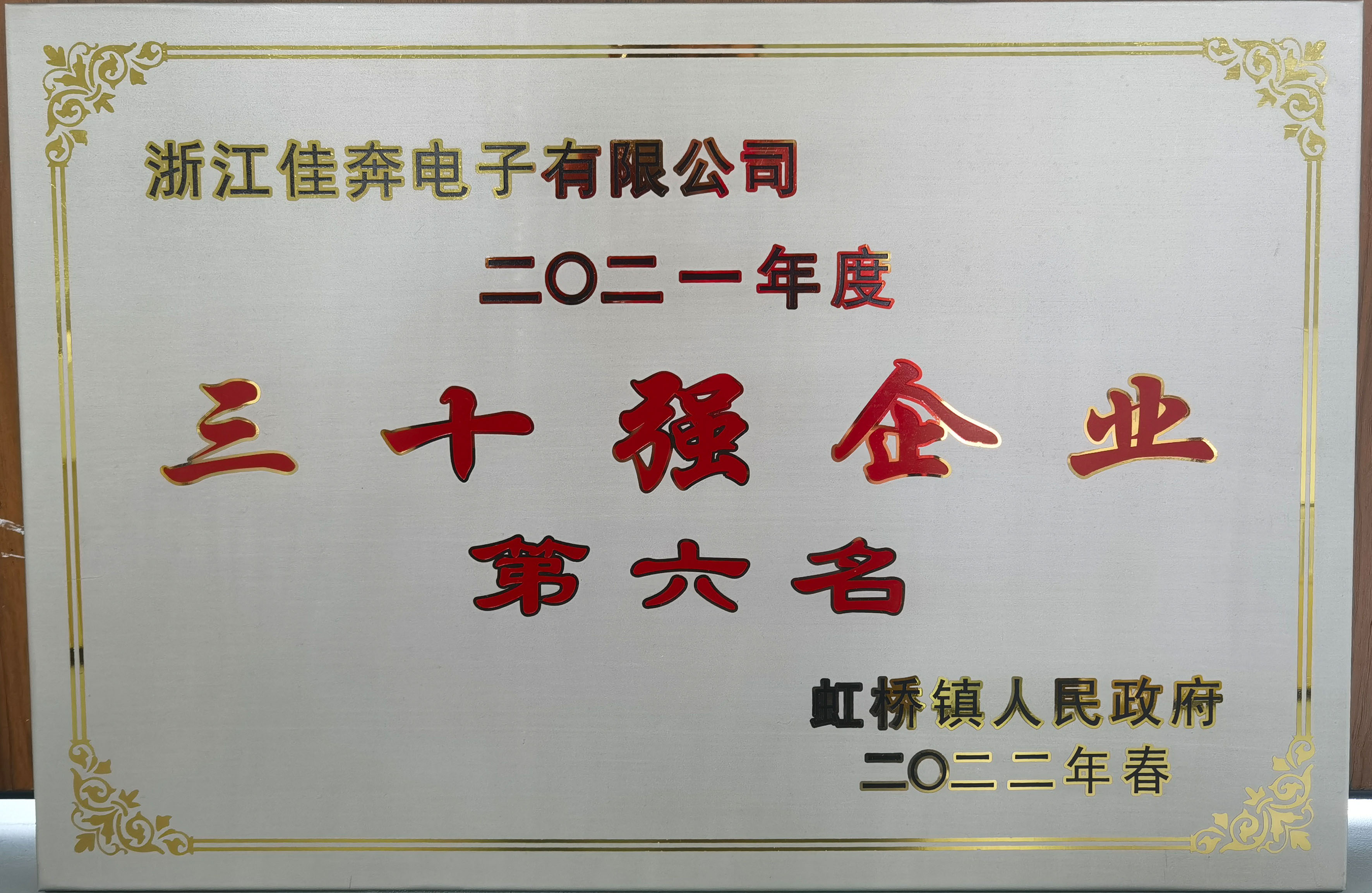 2021年度虹桥镇三十强企业第六名