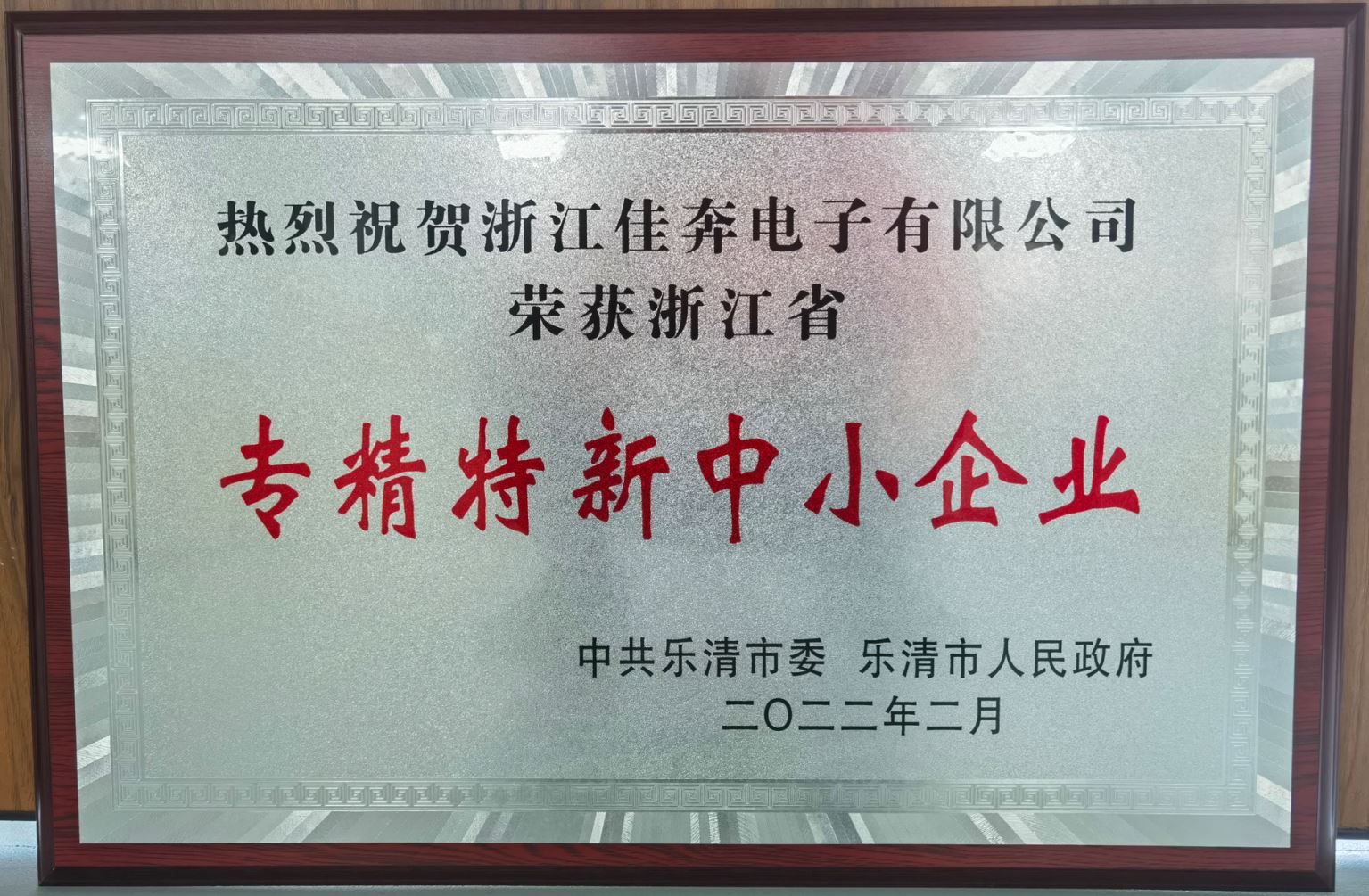 “浙江省专精特新中小企业”荣誉证书