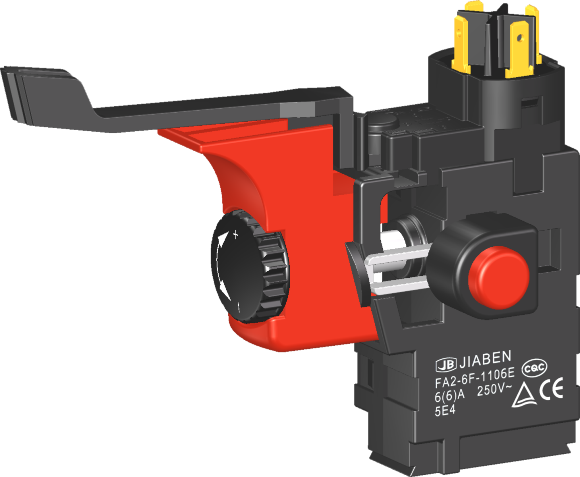 我司主要产品:微动开关、跷板开关、按钮开关、扳机开关、调速开关和电位器开关等各类交、直流器具开关和各类交、直流线路板模块,应用于交、直流电动工具、电动园林工具、清洁器具、家用电器和小型机床等行业。 Our company main products: micro switch, rocker switch, push button switch, trigger switch, speed switch and potentiometer switch and other kinds of a