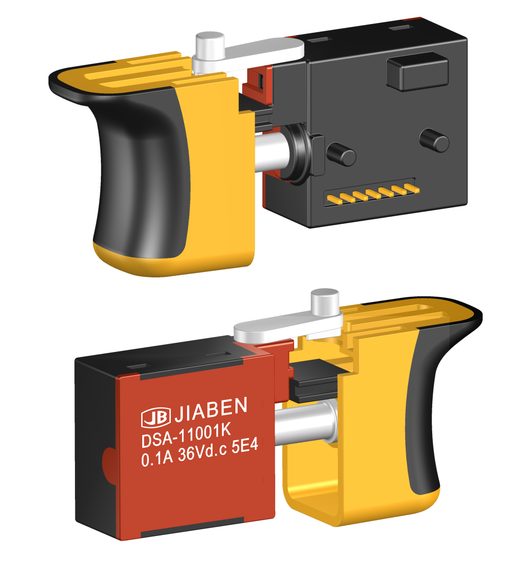 我司主要产品:微动开关、跷板开关、按钮开关、扳机开关、调速开关和电位器开关等各类交、直流器具开关和各类交、直流线路板模块,应用于交、直流电动工具、电动园林工具、清洁器具、家用电器和小型机床等行业。 Our company main products: micro switch, rocker switch, push button switch, trigger switch, speed switch and potentiometer switch and other kinds of a